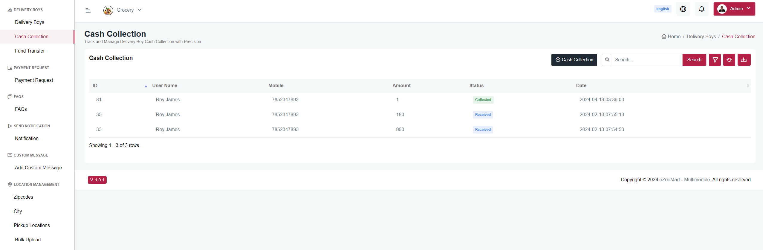 Here, you can create City, set minimum delivery amounts, and specify delivery charges. You can also edit or delete existing cities
