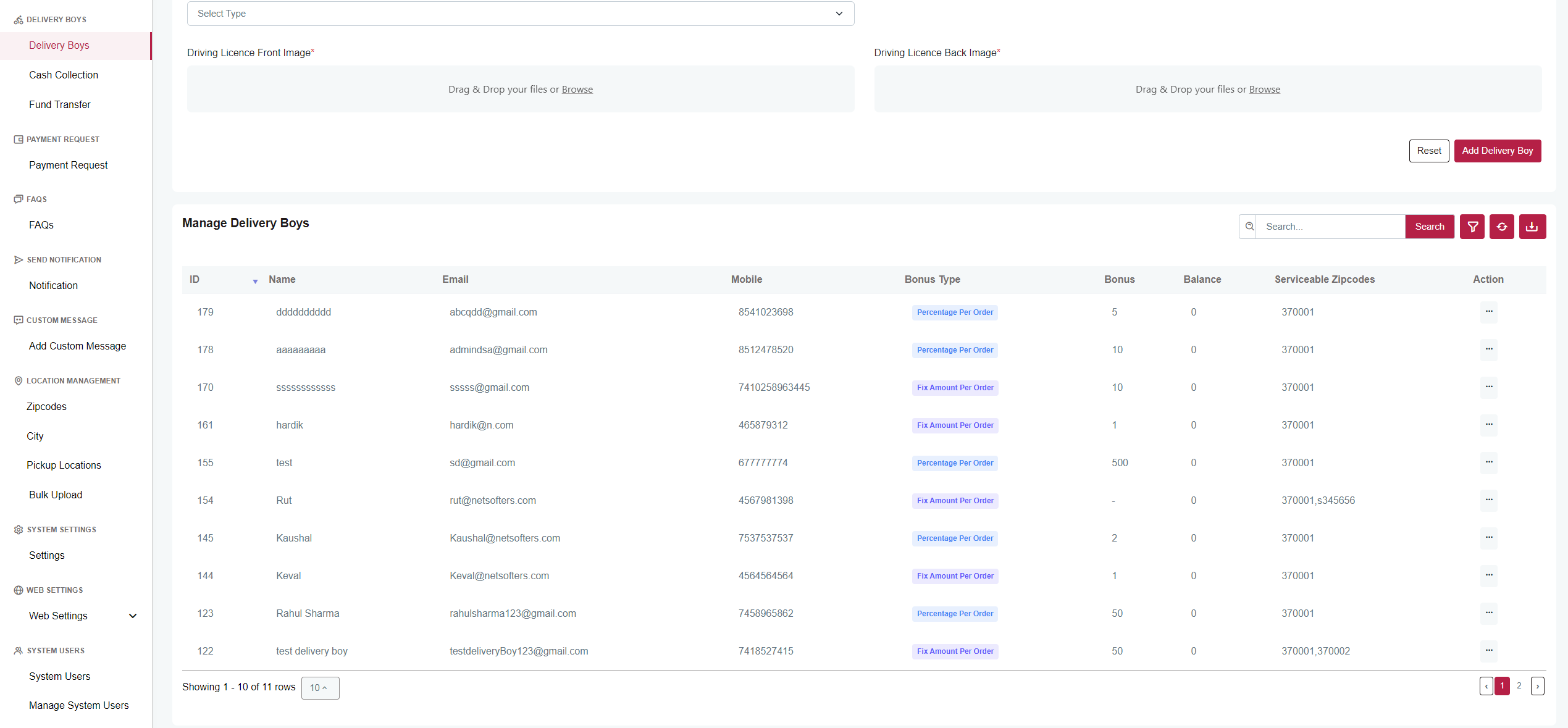 Here, you can create ZIP codes, set city name, set minimum delivery amounts, and specify delivery charges. You can also edit or delete existing ZIP codes